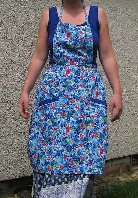 The fabric for this apron came from thrifted curtains, and a cot sheet. I drafted the pattern myself, getting a rough size by using a singlet of the kids. Front and back is the same, it can be a loose fit because they will be wearing it over their clothes.
